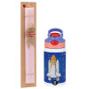 Nasa Space Shuttle, Easter Set, Children's thermal stainless steel water bottle with safety straw, pink/purple (350ml) & Easter scented flat candle (30cm) (PINK)
