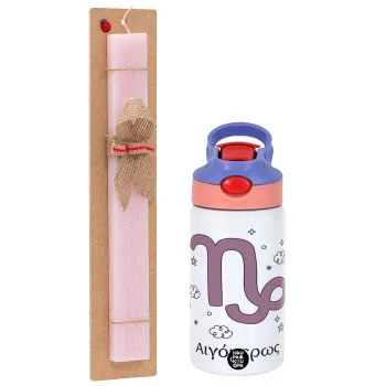 Ζώδια Αιγόκερως, Easter Set, Children's thermal stainless steel water bottle with safety straw, pink/purple (350ml) & Easter scented flat candle (30cm) (PINK)