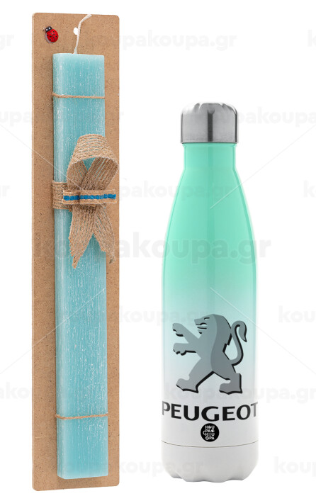 Peugeot, Easter Set, Metallic green/white thermos (Stainless steel), double-walled, 500ml & scented flat Easter candle (30cm) (TURQUOISE)