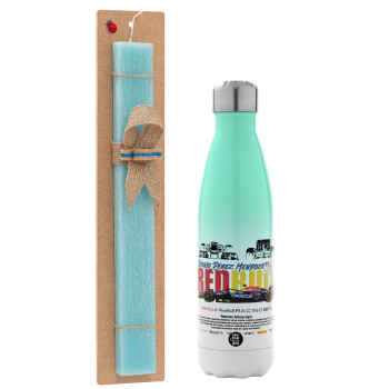 Sergio Perez - F1 Red Bull Racing, Easter Set, Metallic green/white thermos (Stainless steel), double-walled, 500ml & scented flat Easter candle (30cm) (TURQUOISE)