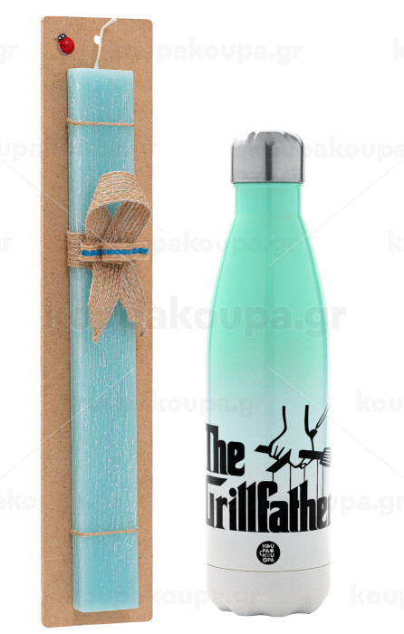 The Grill Father, Easter Set, Metallic green/white thermos (Stainless steel), double-walled, 500ml & scented flat Easter candle (30cm) (TURQUOISE)