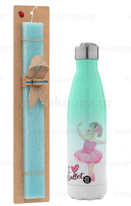 I Love Ballet, Easter Set, Metallic green/white thermos (Stainless steel), double-walled, 500ml & scented flat Easter candle (30cm) (TURQUOISE)