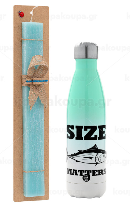 Size matters, Easter Set, Metallic green/white thermos (Stainless steel), double-walled, 500ml & scented flat Easter candle (30cm) (TURQUOISE)