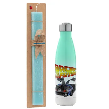 Back to the future, Easter Set, Metallic green/white thermos (Stainless steel), double-walled, 500ml & scented flat Easter candle (30cm) (TURQUOISE)