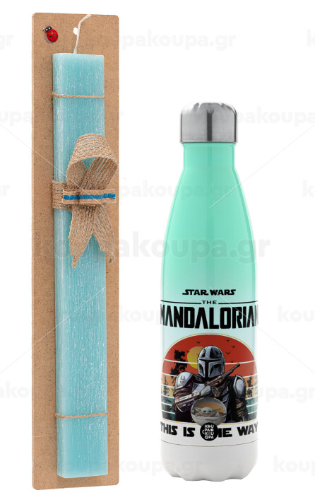 Mandalorian, Easter Set, Metallic green/white thermos (Stainless steel), double-walled, 500ml & scented flat Easter candle (30cm) (TURQUOISE)