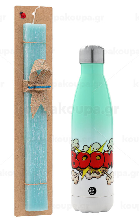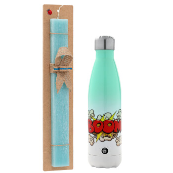 BOOM!!!, Easter Set, Metallic green/white thermos (Stainless steel), double-walled, 500ml & scented flat Easter candle (30cm) (TURQUOISE)