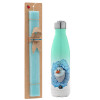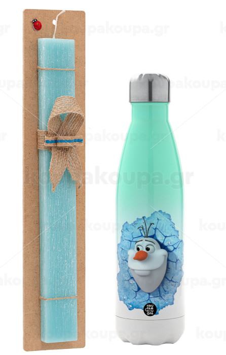 Frozen Olaf, Easter Set, Metallic green/white thermos (Stainless steel), double-walled, 500ml & scented flat Easter candle (30cm) (TURQUOISE)