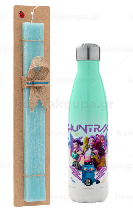 Huntrix K-pop series, Easter Set, Metallic green/white thermos (Stainless steel), double-walled, 500ml & scented flat Easter candle (30cm) (TURQUOISE)