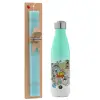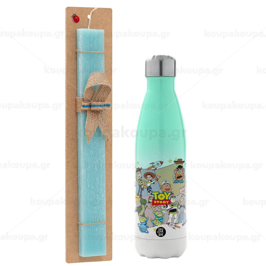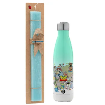 toystory characters, Easter Set, Metallic green/white thermos (Stainless steel), double-walled, 500ml & scented flat Easter candle (30cm) (TURQUOISE)