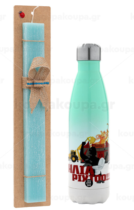 Ηλία ρίχτοοο!!!, Easter Set, Metallic green/white thermos (Stainless steel), double-walled, 500ml & scented flat Easter candle (30cm) (TURQUOISE)