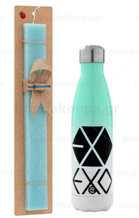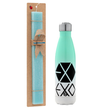 EXO Band korea, Easter Set, Metallic green/white thermos (Stainless steel), double-walled, 500ml & scented flat Easter candle (30cm) (TURQUOISE)