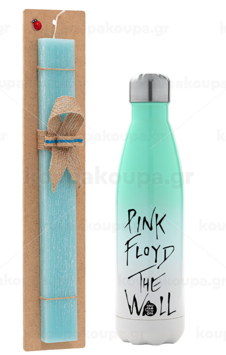 Pink Floyd, The Wall, Easter Set, Metallic green/white thermos (Stainless steel), double-walled, 500ml & scented flat Easter candle (30cm) (TURQUOISE)