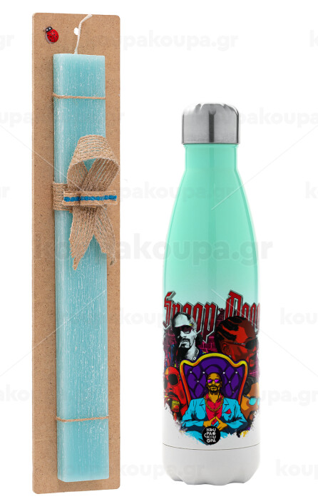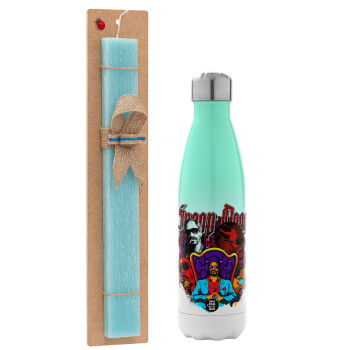 Snoop Dogg, Easter Set, Metallic green/white thermos (Stainless steel), double-walled, 500ml & scented flat Easter candle (30cm) (TURQUOISE)