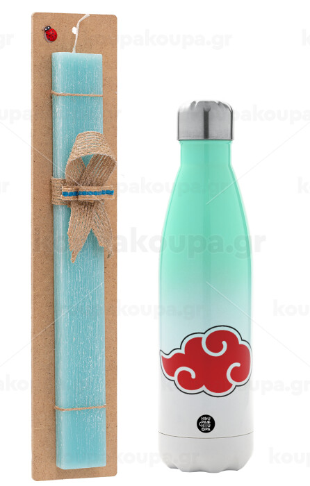 Naruto Akatsuki Cloud, Easter Set, Metallic green/white thermos (Stainless steel), double-walled, 500ml & scented flat Easter candle (30cm) (TURQUOISE)
