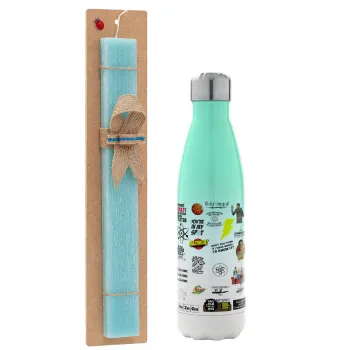 The Big Bang Theory pattern, Easter Set, Metallic green/white thermos (Stainless steel), double-walled, 500ml & scented flat Easter candle (30cm) (TURQUOISE)