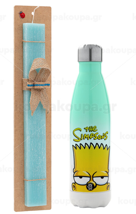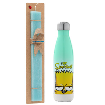The Simpsons Bart, Easter Set, Metallic green/white thermos (Stainless steel), double-walled, 500ml & scented flat Easter candle (30cm) (TURQUOISE)