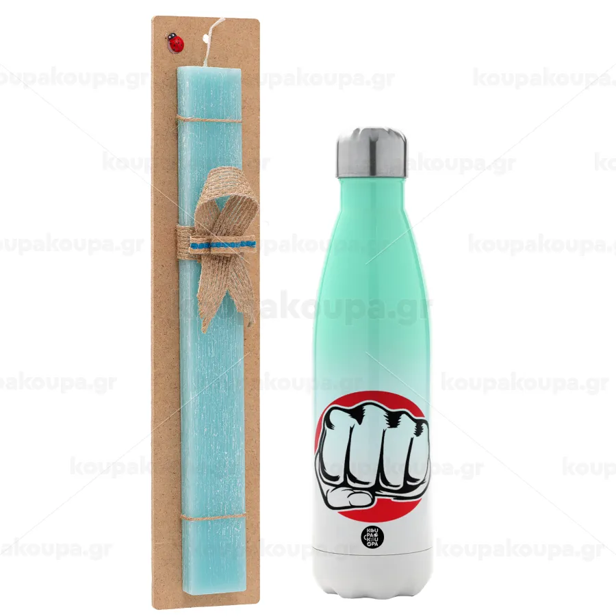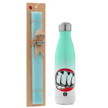 Punch, Easter Set, Metallic green/white thermos (Stainless steel), double-walled, 500ml & scented flat Easter candle (30cm) (TURQUOISE)