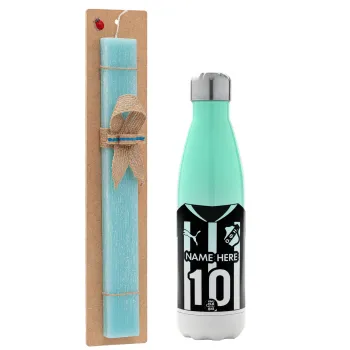 ΟΦΗ εμφάνιση, Easter Set, Metallic green/white thermos (Stainless steel), double-walled, 500ml & scented flat Easter candle (30cm) (TURQUOISE)