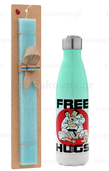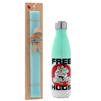 JUDO free hugs, Easter Set, Metallic green/white thermos (Stainless steel), double-walled, 500ml & scented flat Easter candle (30cm) (TURQUOISE)