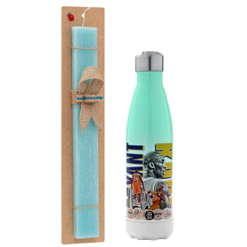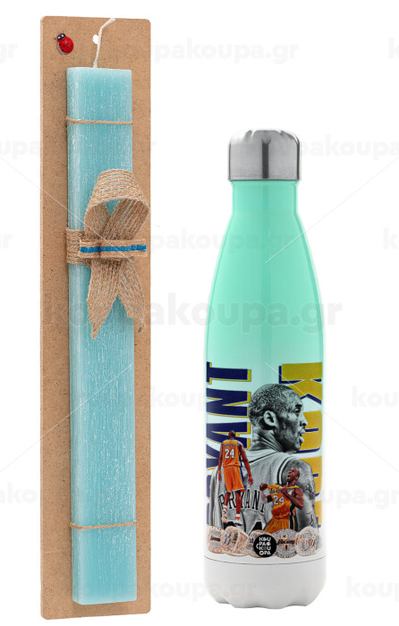 Kobe Bryant, Easter Set, Metallic green/white thermos (Stainless steel), double-walled, 500ml & scented flat Easter candle (30cm) (TURQUOISE)