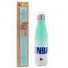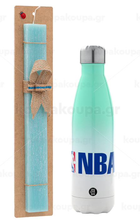 NBA, Easter Set, Metallic green/white thermos (Stainless steel), double-walled, 500ml & scented flat Easter candle (30cm) (TURQUOISE)