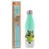 Neymar JR, Easter Set, Metallic green/white thermos (Stainless steel), double-walled, 500ml & scented flat Easter candle (30cm) (TURQUOISE)