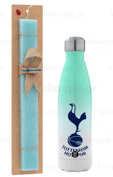 Tottenham Hotspur, Easter Set, Metallic green/white thermos (Stainless steel), double-walled, 500ml & scented flat Easter candle (30cm) (TURQUOISE)