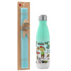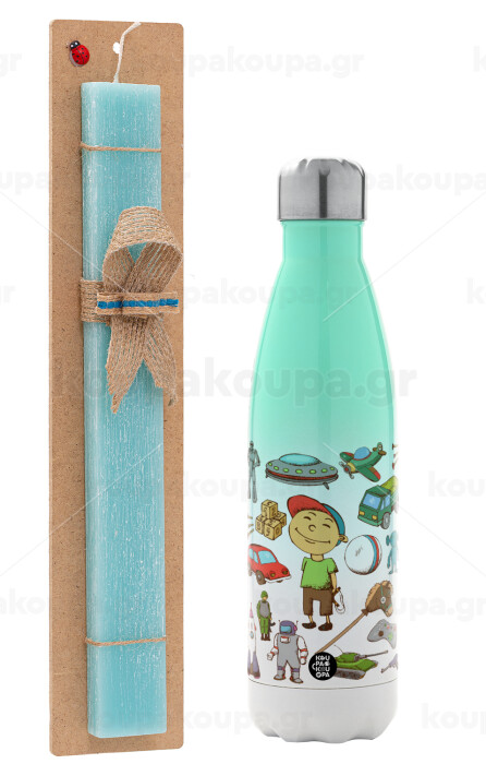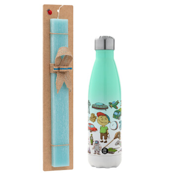 Toys Boy, Easter Set, Metallic green/white thermos (Stainless steel), double-walled, 500ml & scented flat Easter candle (30cm) (TURQUOISE)