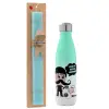 Κρητικός "Έρχεται Πάσχα κουράδι", Easter Set, Metallic green/white thermos (Stainless steel), double-walled, 500ml & scented flat Easter candle (30cm) (TURQUOISE)