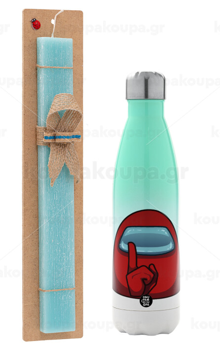 Among US, Easter Set, Metallic green/white thermos (Stainless steel), double-walled, 500ml & scented flat Easter candle (30cm) (TURQUOISE)
