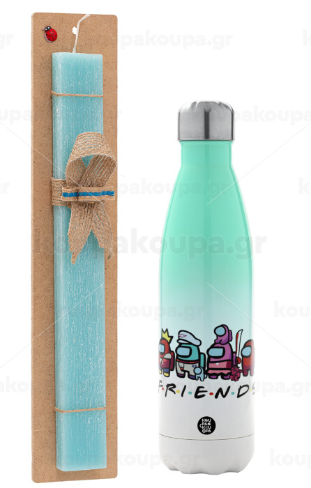Among US Friends, Easter Set, Metallic green/white thermos (Stainless steel), double-walled, 500ml & scented flat Easter candle (30cm) (TURQUOISE)