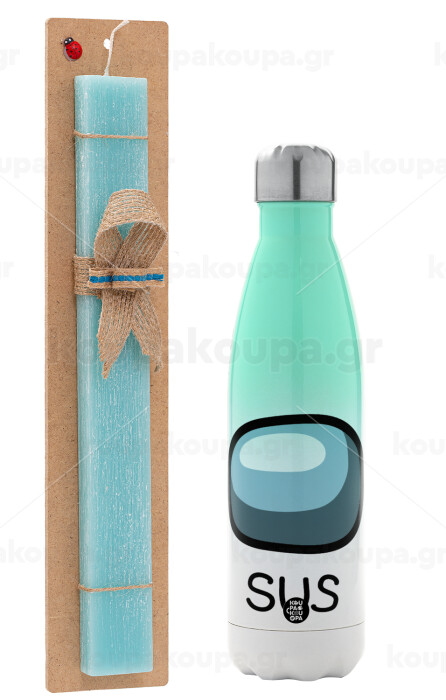 Among US SUS!!!, Easter Set, Metallic green/white thermos (Stainless steel), double-walled, 500ml & scented flat Easter candle (30cm) (TURQUOISE)