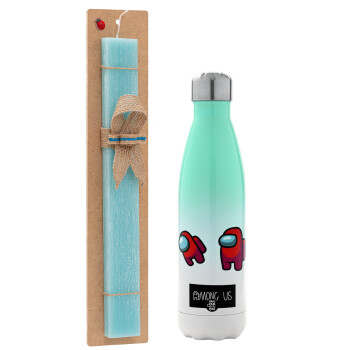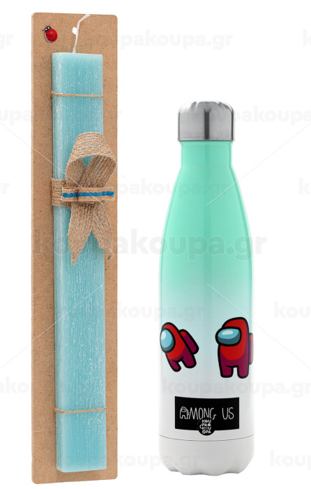 Among US, Easter Set, Metallic green/white thermos (Stainless steel), double-walled, 500ml & scented flat Easter candle (30cm) (TURQUOISE)