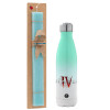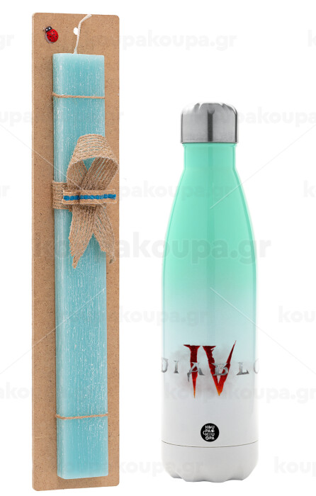 Diablo iv, Easter Set, Metallic green/white thermos (Stainless steel), double-walled, 500ml & scented flat Easter candle (30cm) (TURQUOISE)