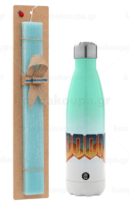 DOOM, Easter Set, Metallic green/white thermos (Stainless steel), double-walled, 500ml & scented flat Easter candle (30cm) (TURQUOISE)