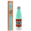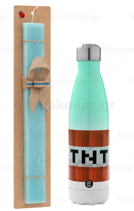 Minecraft TNT, Easter Set, Metallic green/white thermos (Stainless steel), double-walled, 500ml & scented flat Easter candle (30cm) (TURQUOISE)