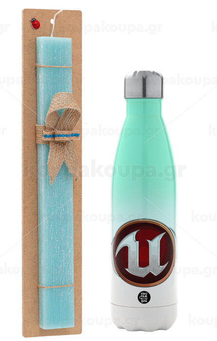 Unreal, Easter Set, Metallic green/white thermos (Stainless steel), double-walled, 500ml & scented flat Easter candle (30cm) (TURQUOISE)
