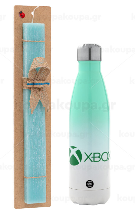 xbox, Easter Set, Metallic green/white thermos (Stainless steel), double-walled, 500ml & scented flat Easter candle (30cm) (TURQUOISE)