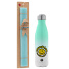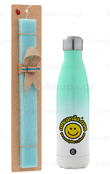 Concarda, Easter Set, Metallic green/white thermos (Stainless steel), double-walled, 500ml & scented flat Easter candle (30cm) (TURQUOISE)