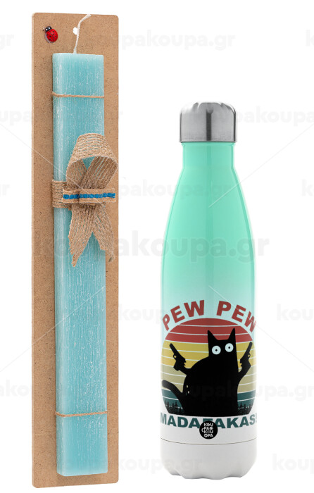 PEW PEW madafakas, Easter Set, Metallic green/white thermos (Stainless steel), double-walled, 500ml & scented flat Easter candle (30cm) (TURQUOISE)