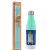 Nasa Space Shuttle, Easter Set, Metallic green/white thermos (Stainless steel), double-walled, 500ml & scented flat Easter candle (30cm) (TURQUOISE)