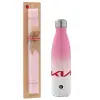 KIA, Easter Set, Metallic pink/white (Stainless steel) thermos, double-walled, 500ml & aromatic flat Easter candle (30cm) (PINK)