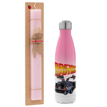 Back to the future, Easter Set, Metallic pink/white (Stainless steel) thermos, double-walled, 500ml & aromatic flat Easter candle (30cm) (PINK)