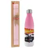 Back to the future, Easter Set, Metallic pink/white (Stainless steel) thermos, double-walled, 500ml & aromatic flat Easter candle (30cm) (PINK)