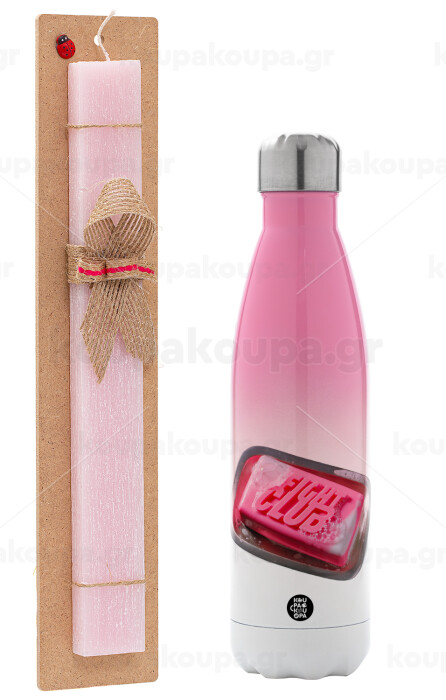 Fight Club, Easter Set, Metallic pink/white (Stainless steel) thermos, double-walled, 500ml & aromatic flat Easter candle (30cm) (PINK)