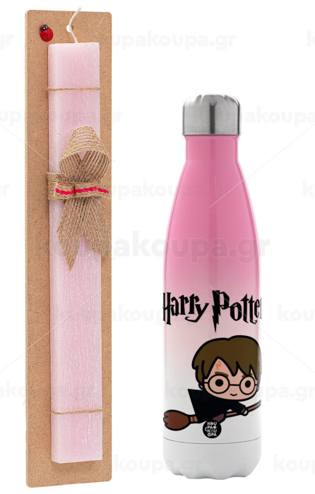 Harry potter kid, Easter Set, Metallic pink/white (Stainless steel) thermos, double-walled, 500ml & aromatic flat Easter candle (30cm) (PINK)