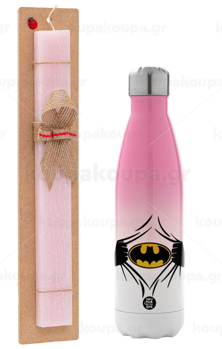 Hero batman, Easter Set, Metallic pink/white (Stainless steel) thermos, double-walled, 500ml & aromatic flat Easter candle (30cm) (PINK)