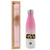 Star Wars, Easter Set, Metallic pink/white (Stainless steel) thermos, double-walled, 500ml & aromatic flat Easter candle (30cm) (PINK)