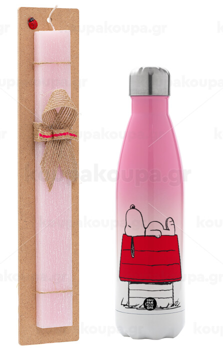 Το σπίτι του snoopy, Easter Set, Metallic pink/white (Stainless steel) thermos, double-walled, 500ml & aromatic flat Easter candle (30cm) (PINK)