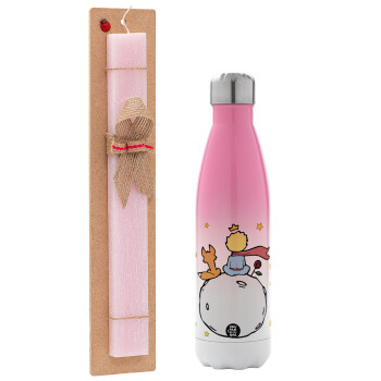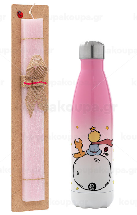Little prince, Easter Set, Metallic pink/white (Stainless steel) thermos, double-walled, 500ml & aromatic flat Easter candle (30cm) (PINK)